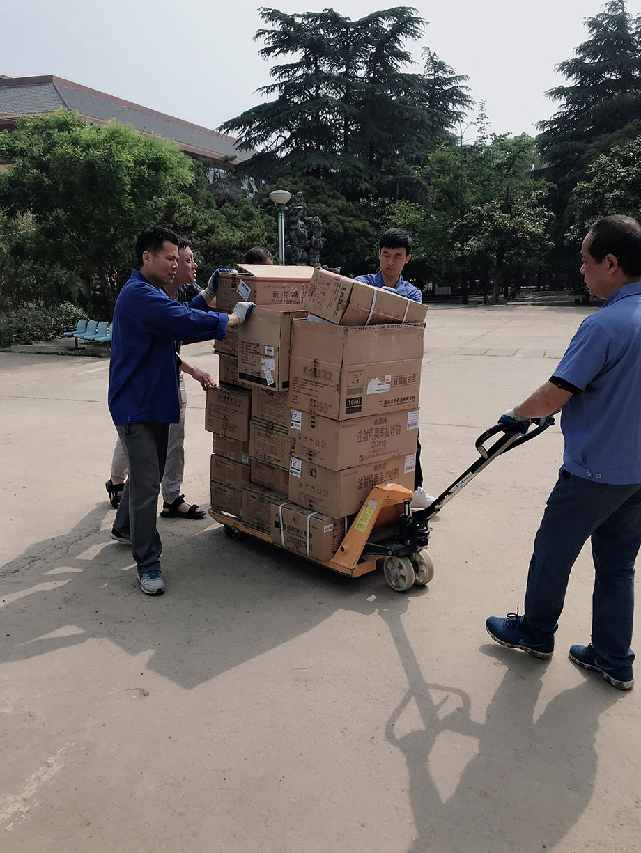 每次藥品全部運(yùn)送到藥材科以后,大家還要和對方老師及時核對藥品,確保藥品的質(zhì)量、數(shù)量、效期、產(chǎn)地、品名、規(guī)格等,確認(rèn)沒有問題才算是配送成功,看著同事們汗流浹背的樣子,真心地為大家點個贊!