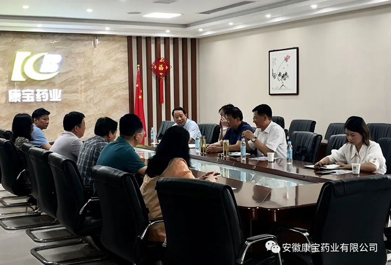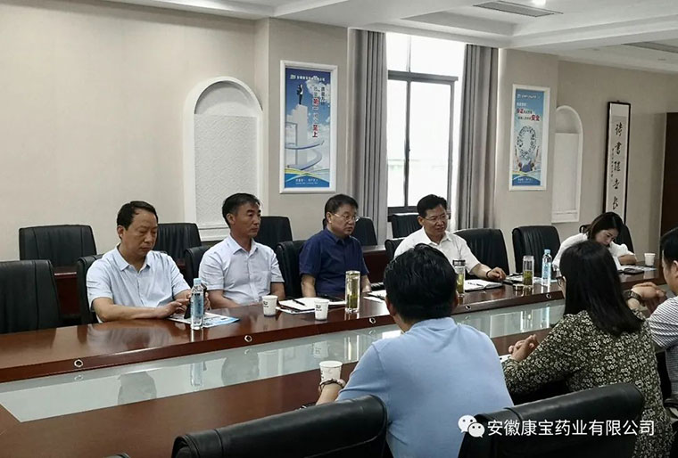6月23日上午,淮南市政府副秘書長聶友俠、淮南市商務(wù)局局長梁廣賢、淮南市大通區(qū)常務(wù)副區(qū)長明冠雷、淮南市市場中心主任童志友、大通區(qū)商務(wù)局副局長江萍,來到康寶藥業(yè)走訪調(diào)研??祵毸帢I(yè)董事長朱興林熱情接待了各位領(lǐng)導(dǎo)并陪同調(diào)研。
