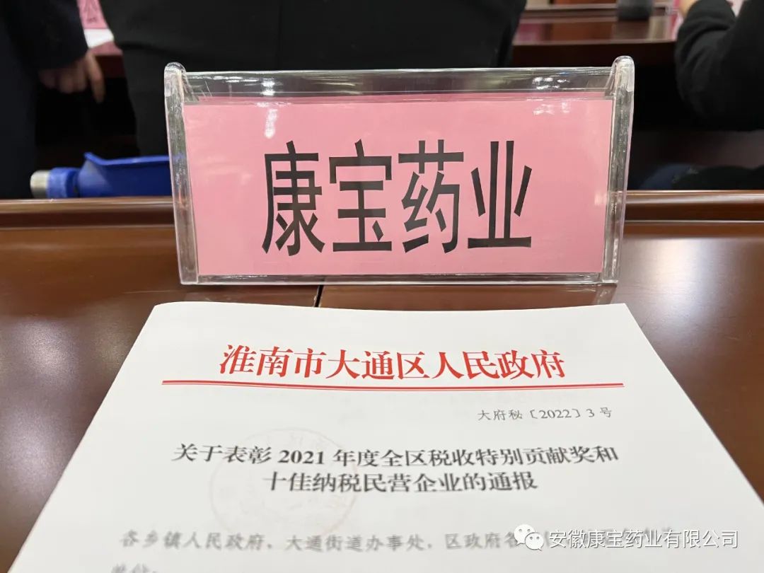 2月26日上午,大通區(qū)雙招雙引會(huì)議在區(qū)機(jī)關(guān)禮堂召開。會(huì)上,康寶藥業(yè)被大通區(qū)委、大通區(qū)政府授予“2021年度民營企業(yè)納稅獎(jiǎng)”??祵毸帢I(yè)已連續(xù)三年榮獲此獎(jiǎng)項(xiàng)。
